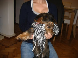Eu tentei mascarar o Óscar de Yasser Arafat neste Carnaval. Apesar das amaaazing bewbs, nada de Arafat na minha casa. Não esteve pelos ajustes.Em compensação, o Pi lá deixou, um tudo-nada contrariado...